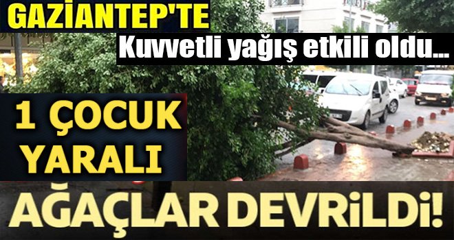 Gaziantep'te ani bastıran yağmur hayatı felç etti. Yağışın etkisiyle devrilen ağacın altında kalan bir çocuk hastaneye kaldırıldı.