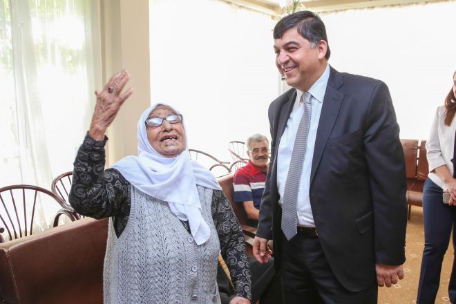 Huzurevi sakinlerine özel ilgi gösteren Başkan Fadıloğlu, bol bol hayır duası aldı.