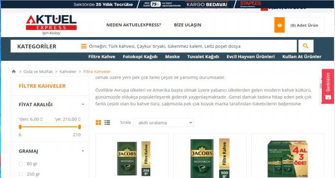 Yukarıdaki faydaları tüketicilerine sunan bu sert içeceği farklı marka ve boyutlarda çeşitli firmalardan satın alabilirsiniz. Aktüel Express isimli firmayı alışverişlerinizden önce inceleyebilir; kahve marka ve fiyatlarını karşılaştırabilirsiniz. Firma sahip olduğu marka çeşitliliği ve ekonomik satış fiyatları ile müşterilerinin memnuniyetini üst düzeyde kazanmaktadır.