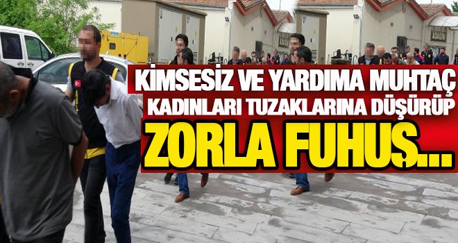 Kimsesiz ve yardıma muhtaç kadınları tuzaklarına düşürüp zorla fuhuş yaptırdıkları iddiasıyla yakalanan 9 kişi, adliyeye sevk edildi.