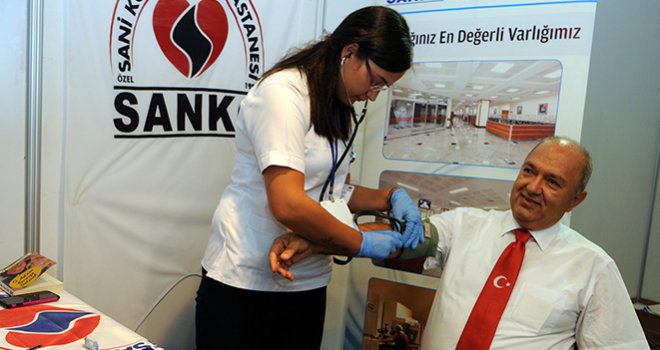 Stantta, ziyaretçilere hastanenin sunduğu sağlık hizmetlerine yönelik bilgilerin yanı sıra, dileyen katılımcıların ücretsiz tansiyon ve kan şeker ölçümü yapılıyor.