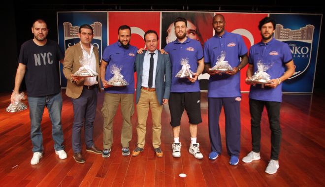 Özel Sanko Koleji ve Fen - Teknoloji Lisesi Müdürü Ercan Yüksel, Gaziantep Royal Halı Basketbol Takımı oyuncularına paylaşımlarından dolayı yöresel bakır işlemeli tabak sunuldu.