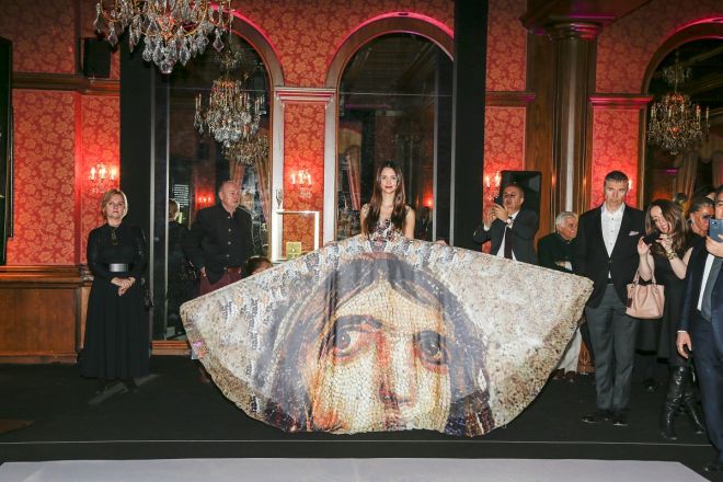 Sanat koleksiyoneri Bibi Gritti'nin desteğiyle Gstaad Palace Hotel'de düzenlenen özel gecede, Sevan Bıçakçı'nın mikro mozaik ayrıntılı yüzüklerini de içeren seçilmiş eserleri ile projeye özel hazırlanan Mozaik Yolu mappingi sergilendi.