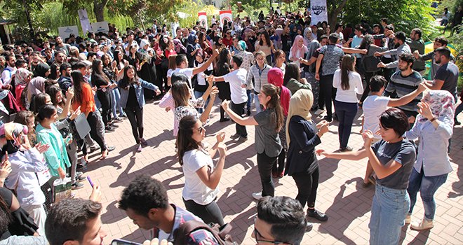 GAÜN Öğrenci Yemekhanesi önünde düzenlenen, oldukça renkli ve eğlenceli görüntülere sahne olan etkinlikte; GAÜN Rektörü Prof. Dr. Ali Gür, Rektör Yardımcıları Prof. Dr. Metin Bedir, Prof. Dr. Şehmus Demir, Genel Sekreter Doç. Dr. Ayhan Doğan ve Genel Sekreter Yardımcısı Mehmet Ali Eminoğlu stantları gezerek öğrencileri toplulukları hakkında bilgi aldı.