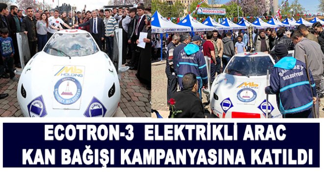 Gaziantep Üniversitesi (GAÜN) Otomobil Robot ve Enerji Topluluğu (ORET) üyeleri, Ecotron-3 isimli yerli elektrikli aracı ile kan bağışı kampanyasına katıldı.