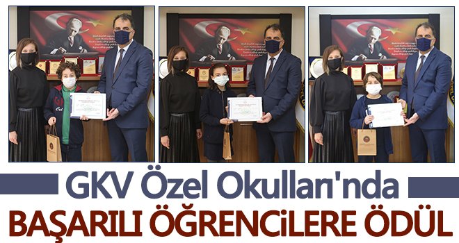 Derece elde eden öğrenciler GKV Özel Okulları Genel Müdürü İsmet Tiryaki ve GKV Özel Ortaokulu Müdürü Seçil Güldemet tarafından üstün başarı belgeleriyle ödüllendirildi.