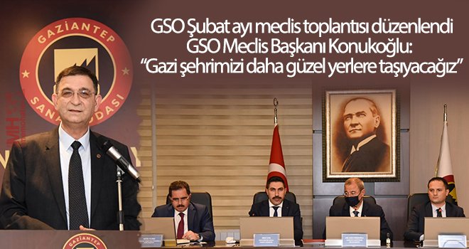 Gaziantep Sanayi Odası (GSO) Şubat Ayı Meclis Toplantısı, Meclis Başkanı Adil Sani Konukoğlu başkanlığında, GSO Yönetim Kurulu Başkanı Adnan Ünverdi, Meclis, Danışma Kurulu ve Yeni Nesil Sanayici Platformu Üyelerinin katılımları ile gerçekleştirildi.