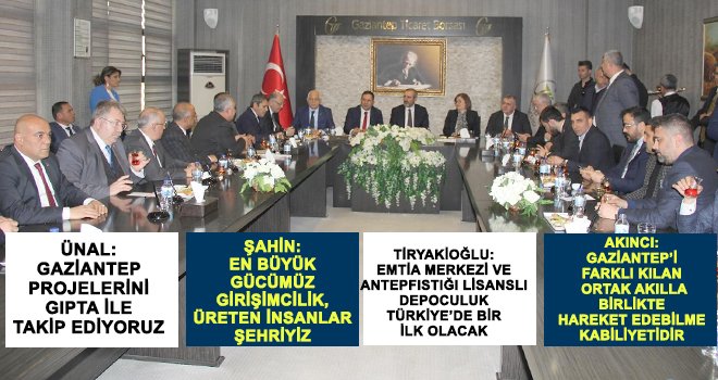 GTB meclis üyeleriyle birlikte olmaktan son derece mutlu olduğunu ifade eden Ünal, “GTB’nin ve Gaziantep Büyükşehir Belediyemizin projelerini gıpta ile dinledim. Bu projelerin Gaziantep ve ülkemize hayırlı uğurlu olmasını diliyorum” dedi.