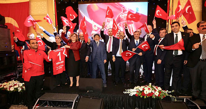 Yakın zamanda yaşadığımız hain15 Temmuz askeri darbe girişimi bize, ‘biz bir ölür, bin diriliriz’ dedi. Mustafa Kemal Atatürk, Gaziantep’in kurtuluş mücadelesinde tek başına duran, imanından, yüreğinden, memleket aşkından başka hiçbir şeyi olmayan yoksulluk ve açlıkla mücadele eden bu güzel vatanın kahramanlığını, Türkiye’nin bütün köylerine, kasabalarına, şehirlerine örnek gösterdi. ‘Ben Gazianteplinin gözlerinden nasıl öpmem ki’ diyen Mustafa Kemal’den aldığımız güçle yolumuza devam ediyoruz.