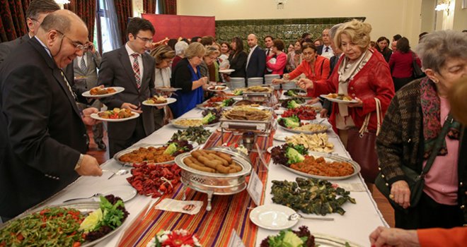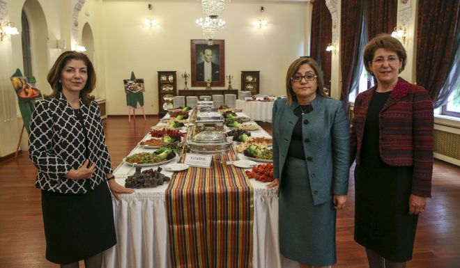 Dışişleri Mensupları Eşleri Dayanışma Derneğince (DMEDD) Ankara Palas Konukevi'nde Gaziantep Büyükşehir Belediye Başkanı Fatma Şahin, Dışişleri Bakanı Mevlüt Çavuşoğlu'nun eşi ve DMEDD Onursal Başkanı Hülya Çavuşoğlu ile Dışişleri Bakanlığı mensuplarının eşlerinin katılımıyla gastronomi etkinliği düzenlendi.