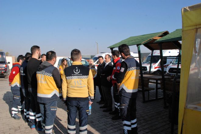 Sınır ötesinde görev yapan UMKE ve 112 Acil Sağlık Hizmetleri personellerini de ziyaret eden Turgut, çalışanların acil sağlık hizmetleri haftasını kutlayarak özverili ve fedakâr çalışmalarından dolayı tüm sağlık çalışanlarına teşekkür etti.