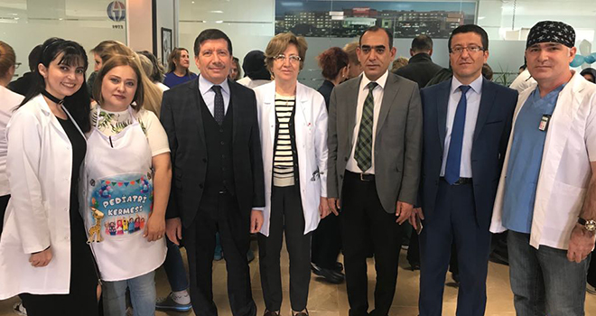 Gaziantep Üniversitesi Şahinbey Hastanesinde Pediatri servisi hastalarına düzenlenen kermeste Sağlık-Sen Gaziantep şube bakanı Cuma Kerkez hastane başmüdürü Mustafa Kalkan ve sendika yöneticileri kermese büyük destek verdiler.