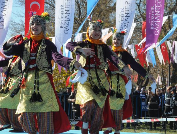 Kutlamalar, ilk olarak Demokrasi Meydanı’nda Atatürk Anıtı’na çelenk konulmasıyla başladı. Çelenk koyma töreninin ardından Gaziantep Valisi Ali Yerlikaya, Büyükşehir Belediye Başkanı Fatma Şahin, 5'inci Zırhlı Tugay Komutanı Tuğgeneral Murat Soysal, AK Parti Gaziantep milletvekilleri Abdulhamit Gül, Canan Candemir Çelik, Ahmet Uzer, CHP milletvekili Akif Ekici, gaziler, vatandaşlar ve öğrenciler Şehitler Abidesi’ne yürüdü. Şehitler Abidesi’ne de çiçek bırakan kalabalık daha sonra Dokurcum Meydanı’na geçti. Dokurcum Meydanı’nda renkli görüntülerin yaşandığı kutlamalarda, İstanbul Mehteran Takımı ve Gaziantep Büyükşehir Belediyesi folklor ekibinin gösterileri ilgi ile izlendi.