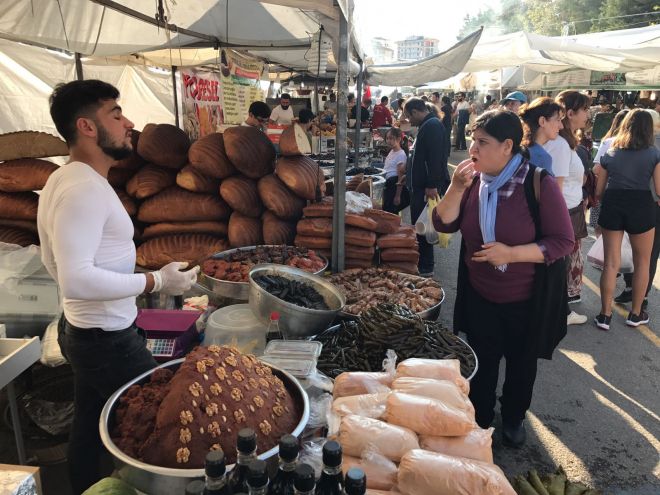 Şenlikte, Antep fıstığı ile yöresel tatlıların olduğu stantların önünde yoğunluk yaşandı.