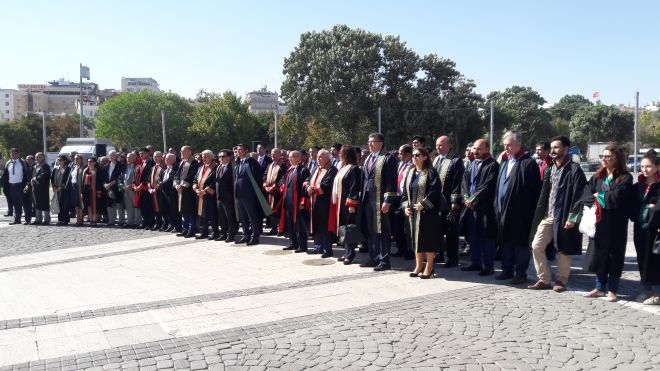 Türkiye Cumhuriyeti Kurucusu, Ulu Önder Mustafa Kemal Atatürk ve ebediyete intikal etmiş olan yargı mensuplarının manevi huzurlarında saygı duruşu ve akabinde İstiklal Marşı’nın okunmasıyla son bulan törene çok sayıda hakim savcı ve avukat katıldı.