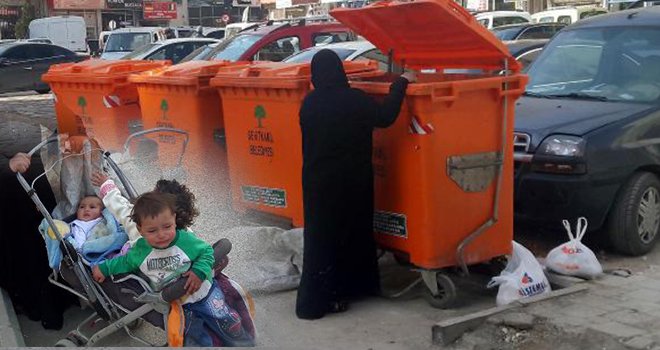 Suriye uyruklu Ayşe Hasri, ismi öğrenilemeyen eşi, çocukları 4 yaşındaki Meys ve 2 yaşındaki Muhammed ile birlikte ülkesindeki çatışmalardan kaçıp Türkiye'ye sığındı. Gaziantep'in Kale Mahallesi'ne yerleşen Ayşe Hasri, eşi geçen yıl ortadan kaybolunca şu anda 4 aylık olan Nehide ismindeki bebeğini de yalnız başına dünyaya getirdi. Çaresiz kadın, tek pusette battaniyeye sardığı 3 çocuğuyla sokakları dolaşarak çöp konteynerinden atık yiyecek ve giyecek topluyor. Çöplerden toplayıp eve götürdükleriyle yaşam mücadelesi veren kadının dramı yürek burktu. Anneleri çöp toplarken pusette yan yana oturan çocuklar sürekli ağladıkları görüldü.
