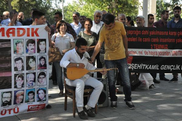 Öğleden sonra Yeşilsu Parkı’nda ellerinde pankart ve dövizlerle toplanan CHP’liler, sloganlar atarak ve saz çalıp türkü söyleyerek 2 Temmuz 1993’te Sivas’taki Madımak Oteli’nde ölenleri andı. Toplanan kalabalık adına konuşan CHP Şehitkamil Gençlik Kolları Başkanı Ali Can Okov, Madımak katliamını unutmayacaklarını ve unutturmayacaklarını söyledi.