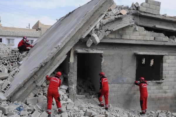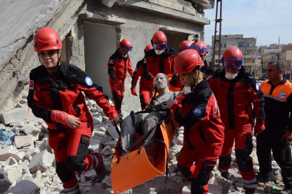 Kahvelipınar Mahallesi’nde kentsel dönüşüm bölgesindeki yıkımına karar verilen 3 katlı bir binada tatbikat düzenleyen ŞAHKUT ekibi, binanın farklı yerlerine 3 cansız manken yerleştirdi. Binanın kontrollü bir şekilde yıkılmasının ardından arama kurtarma çalışmalarına başlayan ekipler, tatbikat gereği enkaz altında kalan 3 cansız mankeni başarıyla çıkardı.