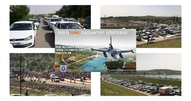 Türk Hava Kuvvetleri'nin gökyüzündeki sarsılmaz gücü Solotürk'ün Gaziantep Alleben Göleti’ndeki gösteri uçuşu izdihama neden oldu. Yaklaşık 200 bin kişinin akın ettiği gösteri öncesi Alleben Göleti önünde 10 kilometrelik kuyruk oluştu. Gaziantep ve çevre illerden gösteriyi izlemek için akın eden vatandaşlardan dolayı otoparklar ve yollar araçlarla dolarken, trafik tıkandı.