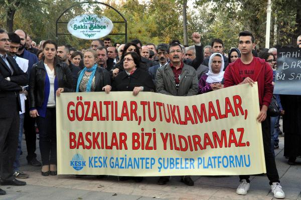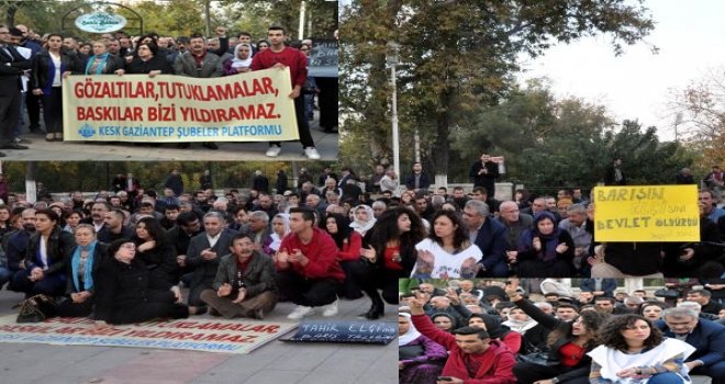 Gaziantep’te, Emek ve Demokrasi Platformu üyeleri, Diyarbakır Baro Başkanı Tahir Elçi’nin öldürülmesini ve gazeteci Can Dündar’ın tutuklanmasını protesto etti.