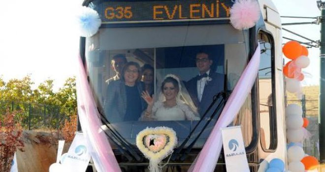 Gazi Ulaş İstasyonunda Gaziantep Büyükşehir Belediyesi'nde görevli aynı işi yapan çiftin nikahı, raylar üzerinde Büyükşehir Belediye Başkanı Fatma Şahin tarafından kıyıldı.