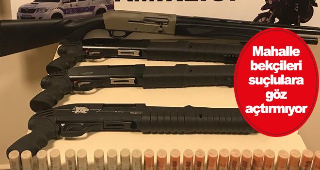 Gaziantep'te çarşı ve mahalle bekçileri bir binanın çatı katında 4 pompalı tüfek ve 25 dolu fişek ele geçirdi, 4 şüpheli gözaltına alındı.