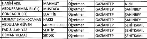 Resmi Gazete'de Millieğitim Bakanlığına bağlı kurumlarda yayınlanan yeni KHK ile il Gaziantep merkezi ve ilçelerde olmak üzere toplam 7 öğretmen mesleklerinden ihraç edildi, 3 öğretmende görevöne iade edildiler.