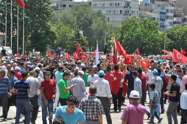 Gaziantep’te, kalabalık bir grup, darbe girişimini protesto etti.