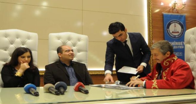 Gaziantep'te merkez ilçe Şahinbey Belediye Başkanı Mehmet Tahmazoğlu, evlenmek için belediyeye başvuran görme engelli çiftin nikahını kıydı. Tahmazoğlu, nikah sırasında çifte şakayla karışık olarak 'siz birbirinizi görüp beğendiniz mi' esprisi yapması salondakileri güldürdü.
