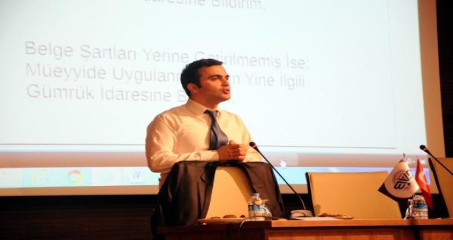 Güneydoğu Anadolu İhracatçılar Birliği'nde düzenlenen ve İhracat Genel Müdürlüğü Dış Ticaret Uzmanı Onur Tekyıldız tarafından verilen seminere katılanlara, dış ticaret mevzuatı anlatıldı. Anlaşmalar Genel Müdürlüğü Dış Ticaret Uzmanı Doktor Tolga Tuncel ise katılımcıları dış pazarlara girişte yaşanan engeller konusunda bilgilendirdi.