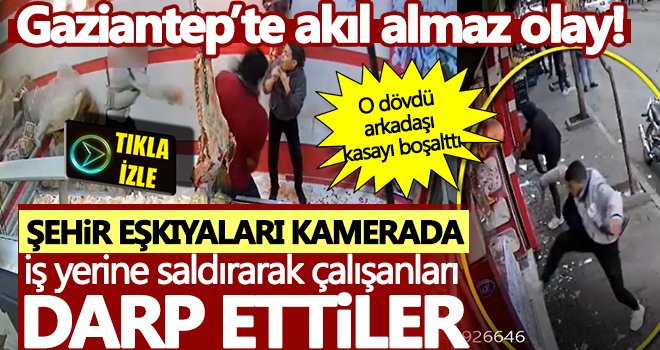 Olay, Şahinbey ilçesi Şenyurt Mahallesi'nde bulunan bir iş yerinde meydana geldi. İş yerine gelen silahlı, bıçaklı ve sopalı saldırganlar, önce iş yeri çalışanlarına saldırdı. İş yerinin camlarını kıran saldırganlardan biri kasada bulunan parayı alarak olay yerinden uzaklaştı. Gaziantep Emniyeti Asayiş Şube Müdürlüğü ekipleri, 3 şüpheli şahsı yakaladı. Yakalanan şahıslar, sevk edildikleri adli mercilerce tutuklanarak cezaevine gönderildi. Tüm o anlar güvenlik kameralarına saniye saniye yansıdı.
