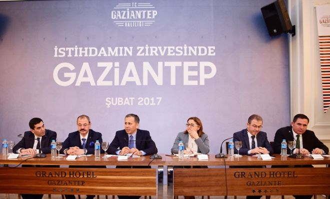 Başlatılan “İstihdam Seferberliği” kapsamında Gaziantep Vali Ali Yerlikaya başkanlığında düzenlenen “İstihdamın Zirvesinde Gaziantep” toplantısına, Sanayi Odası, Ticaret Odası, Ticaret Borsası, Güneydoğu Anadolu İhracatçılar Birliği, Esnaf ve Sanatkarlar Odaları Birliği, Organize Sanayi Bölgesi Başkanlığı, İŞKUR, SGK, KOSGEB İl Müdürlükleri ve 150’den fazla işçi çalıştıran firma temsilcileri katıldı.