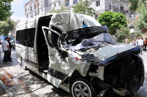 Gaziantep’te, öğrenci servis minibüsü park halindeki askeri kamyona arkadan çarptı. Kazada, 8'i öğrenci 9 kişi yaralandı.