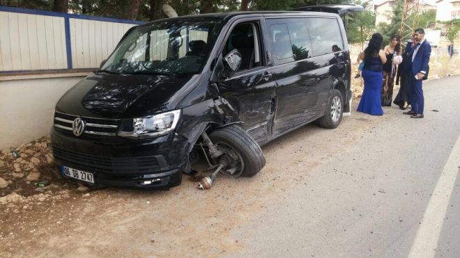 Gaziantep'te otomobilleriyle ormanlık bir bölgede fotograf çekmeye giden gelin ve damat kaza geçirdi. Çiceği burnunda çift tanınmaz hale gelen araçta burunları bile kanamadan kurtuldu.