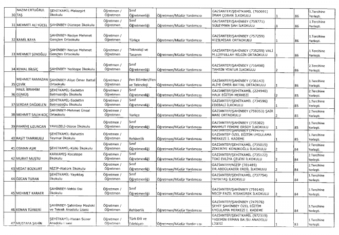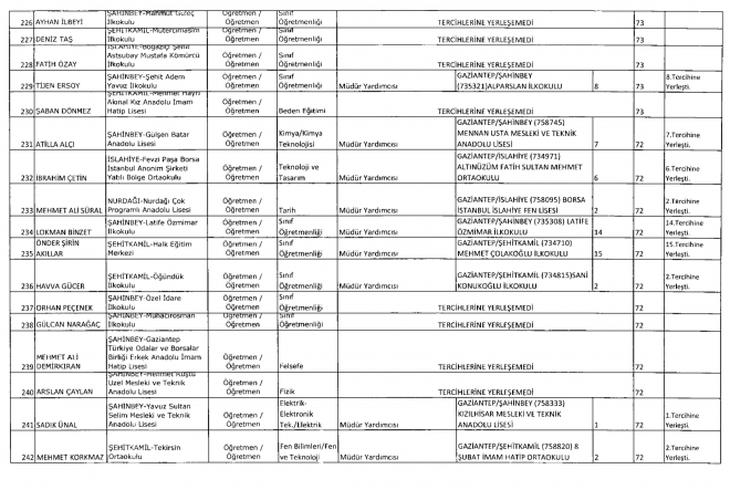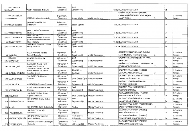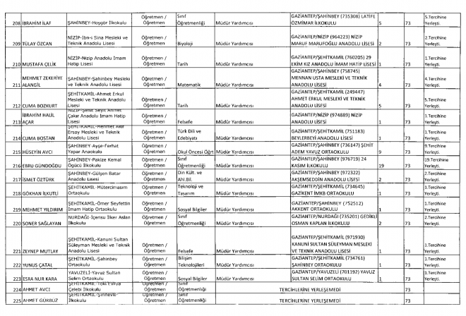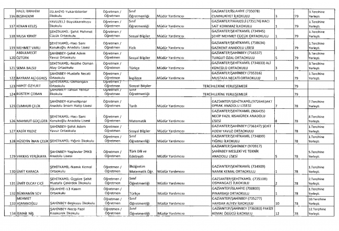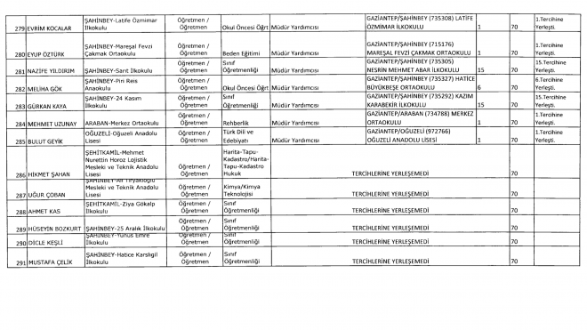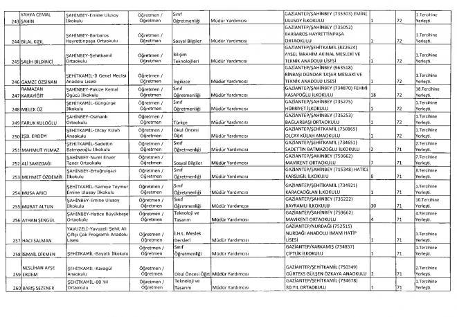 Milli Eğitim Bakanlığı tarafından 81 ilin okullarına Müdür Başyardımcısı ve Müdür yardımcıları atandı. MEB’e bağlı Gaziantep’te ise 257 okula atama yapıldı. Tercih yapan öğretmenlerden 34’ü ise tercihlerine yerleşemedi.