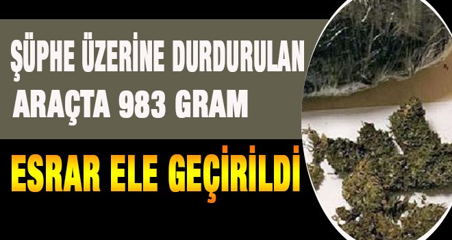 Gaziantep'te, şüphe üzerine durdurulan ve 983 gram esrar ele geçirilen otomobilin sürücüsü gözaltına alındı.