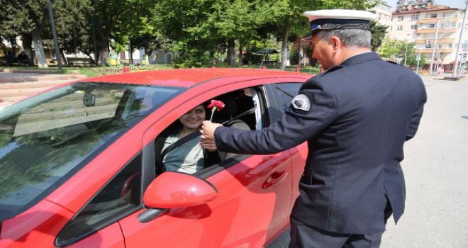 Trafik Denetleme Şube Müdürlüğü tarafından 'Trafik Haftası' kapsamında kentteki uygulama noktalarında durdurulan sürücülere karanfil dağıtıldı. Aynı zamanda sürücülere dikkat etmeleri gereken kurallar konusunda uyaran trafik polisleri, emniyet kemeri ve hız konusunda duyarlılık gösterilmesini istedi.