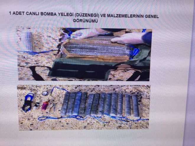 Olay yerinde yapılan aramalarda; (1) Adet Canlı bomba yeleği, (12) adet demir bilyelerle güçlendirilmiş patlayıcı madde bloğu, (2) adet el bombası fünyesi ve (2) adet elektrikli fünye elde edilmiştir