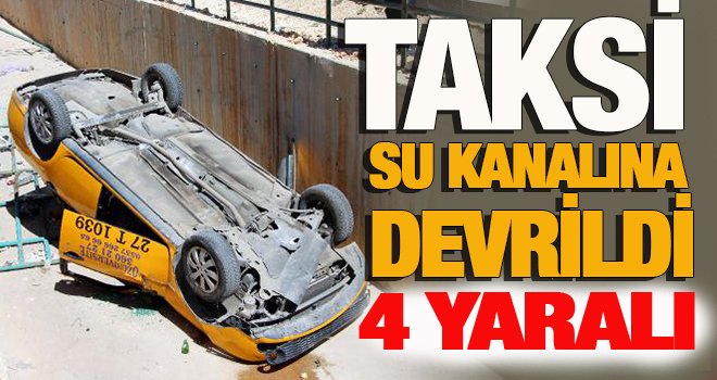 Gaziantep’te, sürücüsünün direksiyon kontrolünü yitirmesi sonucu su kanalına devrilen takside 4 kişi yaralandı.