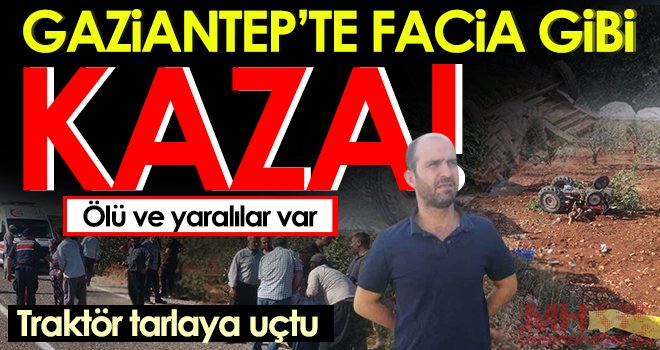 Gaziantep'te fayans döşeme işinden dönen 5 kişinin bulunduğu traktör, fıstık tarlasına uçtu. Feci kazada 1 kişi hayatını kaybederken, 4 kişi de yaralandı.