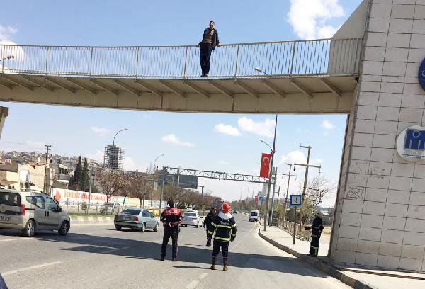 Olay, öğleden sonra İpekyolu'ndaki Turgut Özal üst geçidinde meydana geldi. Üst geçide çıkan Erkan D.'nin atlayacağını söylemesi üzerine ihbarla gelen polisler, güvenlik önlemi alıp itfaiye ekiplerini çağırdı. Polisin ikna çabalarına olumsuz yanıt veren Erkan D., yaklaşık 5 metre yükseklikteki üst geçitten atlayıp itfaiye erlerinin açtığı brandaya düştü. Yaralanan Erkan D., olay yerinde hazır bekletilen sağlık görevlileri tarafından ambulansla Şehitkamil Devlet Hastanesi'ne götürüldü. Acil serviste tedaviye alınan Erkan D.'nin hayati tehlikesinin bulunmadığı belirtildi.