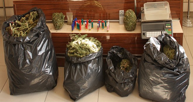 İlimiz genelinde uyuşturucu madde ticareti yapmak isteyen şahısların olduğunun tespit edilmesi üzerine, (M.N.A.) ve (M.A) isimli şüpheli şahısların ikametine yapılan operasyonda; (5) kg esrar, (3) adet değişik markalarda Av Tüfeği, (1) adet ruhsatsız tabanca, (2) adet Terazi, (110) adet değişik boy ve ebatlarda fişek ve İstanbul Bayrampaşa Çevik Kuvvet Şube Müdürlüğü önünde düzenlenen silahlı saldırıda kullanılanla aynı model (2) adet SHE marka otomatik Silah ele geçirilmiştir.