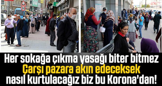 Öte yandan kent merkezindeki birçok banka ve PTT şubesi önünde de işlem yaptırmak isteyenler uzun kuyruklar oluşturdu. Görevliler ve polis ekipleri işlem yaptırmak için sıra bekleyenleri sık sık sosyal mesafe kuralına dikkat etmeleri konusunda uyardı.