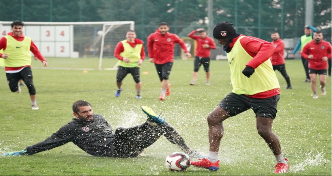 Gaziantep'i etkisi altına alan yoğun dolu yağışı altında gerçekleştirilen antrenmanda, futbolcular zaman zaman zor anlar yaşadı.