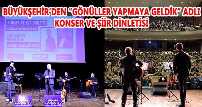 Gaziantep Büyükşehir Belediyesi, kültür etkinlikleri kapsamında “Gönüller Yapmaya Geldik” adlı konser ve şiir dinletisi düzenledi.