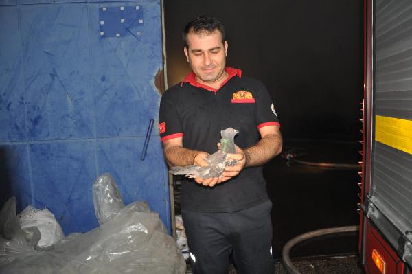 ADANA'da geri dönüşüm fabrikasında çıkan yangına müdahale eden itfaiye ekipleri, binaya yuva yapan güvercinleri kurtarmak için seferber oldu. Büyük hasara neden olan yangında, çok sayıda güvercin de telef oldu.