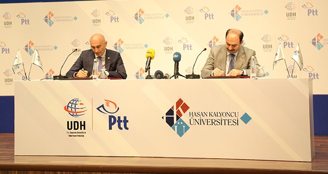 Yenilikçi ve gelişimci bilim merkezi olarak çalışmalarını sürdüren Hasan Kalyoncu Üniversitesi eğitim projelerindeki başarılarını gün geçtikçe arttırıyor. Bu kapsamda eğitim işbirliği çalışmalarına bir yenisini daha ekleyen HKÜ, PTT ile ortak bir eğitim işbirliği protokolü imzaladı. HKÜ Kongre ve Kültür Merkezinde düzenlenen törende imzalar, HKÜ Rektörü Prof. Dr. Tamer Yılmaz ve PTT Yönetim Kurulu Başkanı ve Genel Müdürü Kenan Bozgeyik tarafından atıldı.