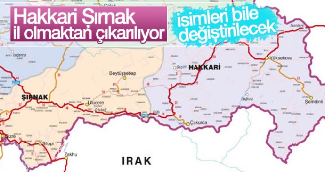 İlçe haline getirilmesi önerilen Hakkari'nin eski adı Kürtçe Colemêrg'den gelen Çölemerik'ti. Hakkari yeni düzenleme Meclis'ten geçerse Hakkari yine eski adını alacak. Yine il haline getirilen Şırnak'ın eski adı da Nuh'un şehri anlamına gelen Şehr-i Nûh'tu.