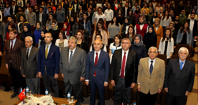 HKÜ Rektörü Tamer Yılmaz, konuşmasının sonunda SANKO Holding Onursal Başkanı Abdulkadir Konukoğlu’na, etkinliğe katılımından dolayı plaket takdim etti.