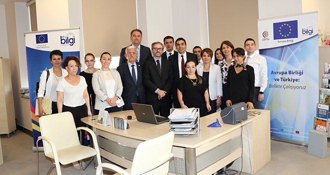 GTO Başkanı Hıdıroğlu, “Avrupa Birliği Türkiye Delegasyonu tarafından, 1995 yılında başlatılan proje kapsamında 1996 yılında ilki Odamızda kurulan ve bugün Türkiye’nin 20 ilinde faaliyet gösteren Avrupa Birliği Bilgi Merkezleri içerisinde Gaziantep’teki bilgi merkezi ilk olduğu gibi aynı zamanda gerçekleştirdiği ilklerle birçok bilgi merkezine öncülük etmektedir. Bilgi Merkezimiz, toplumu AB hakkında bilgilendirmek, AB-Türkiye ilişkileri hakkındaki önyargıların önüne geçmek, halka yönelik doğru ve düzenli bilgi akışını sağlamak amacıyla; kamu kurumlarıyla, okullarla, Sivil Toplum Örgütleriyle, KOBİ'lerle, üniversitelerle, belediyelerle, diğer kurum ve kuruluşlarla ortak etkinlikler gerçekleştirmektedir. Proje kapsamında; seminer, konferans, çalıştay, sergi, tiyatro, sinema organizasyonu, eğitim, kahve sohbetleri, stand katılımlı fuar etkinlikleri ve geniş katılımlı bölgesel etkinlikler gerçekleştirilmektedir” şeklinde konuştu.